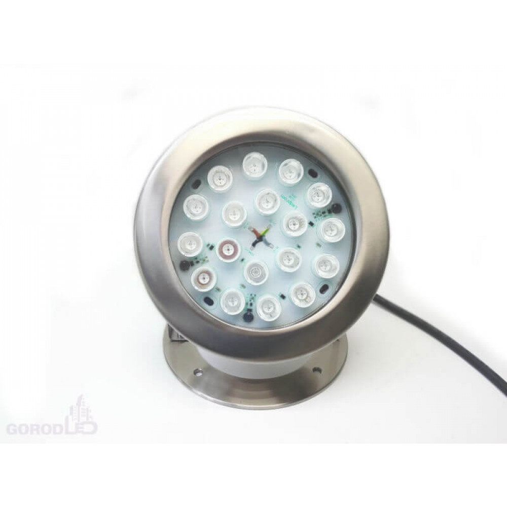 LP G 220/18/60 N AISI 304 Подводный светодиодный светильник мощностью 60 Вт. с питающим напряжением 12V предназначен для освещения и подсветки фонтанов, бассейнов, искуственных прудов, так же применяется для ландшафтного и архитектурного освещения.