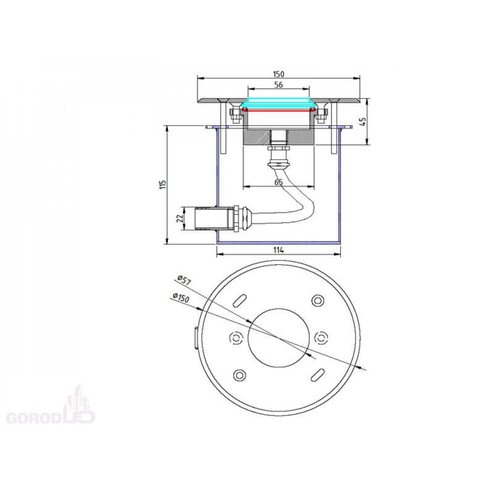 | Степень защиты, IP68 | Тип креплениявстраиваемый | Габаритные размеры,ммD крышки: 150, L корпуса: 115 (со стаканом) |