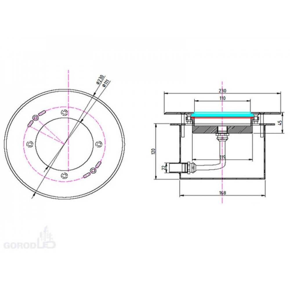 | Степень защиты, IP68 | Тип креплениявстраиваемый | Габаритные размеры,ммD крышки: 230, L корпуса: 120 (со стаканом) |