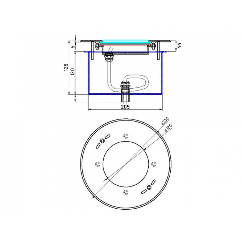 LP GB 250/12/36 RGBW N AISI 316 Подводный светодиодный светильник мощностью 36 Вт. с питающим напряжением 12V предназначен для освещения и подсветки фонтанов, бассейнов, аквапарков искуственных прудов, так же применяется для ландшафтного и архитектурного освещения.