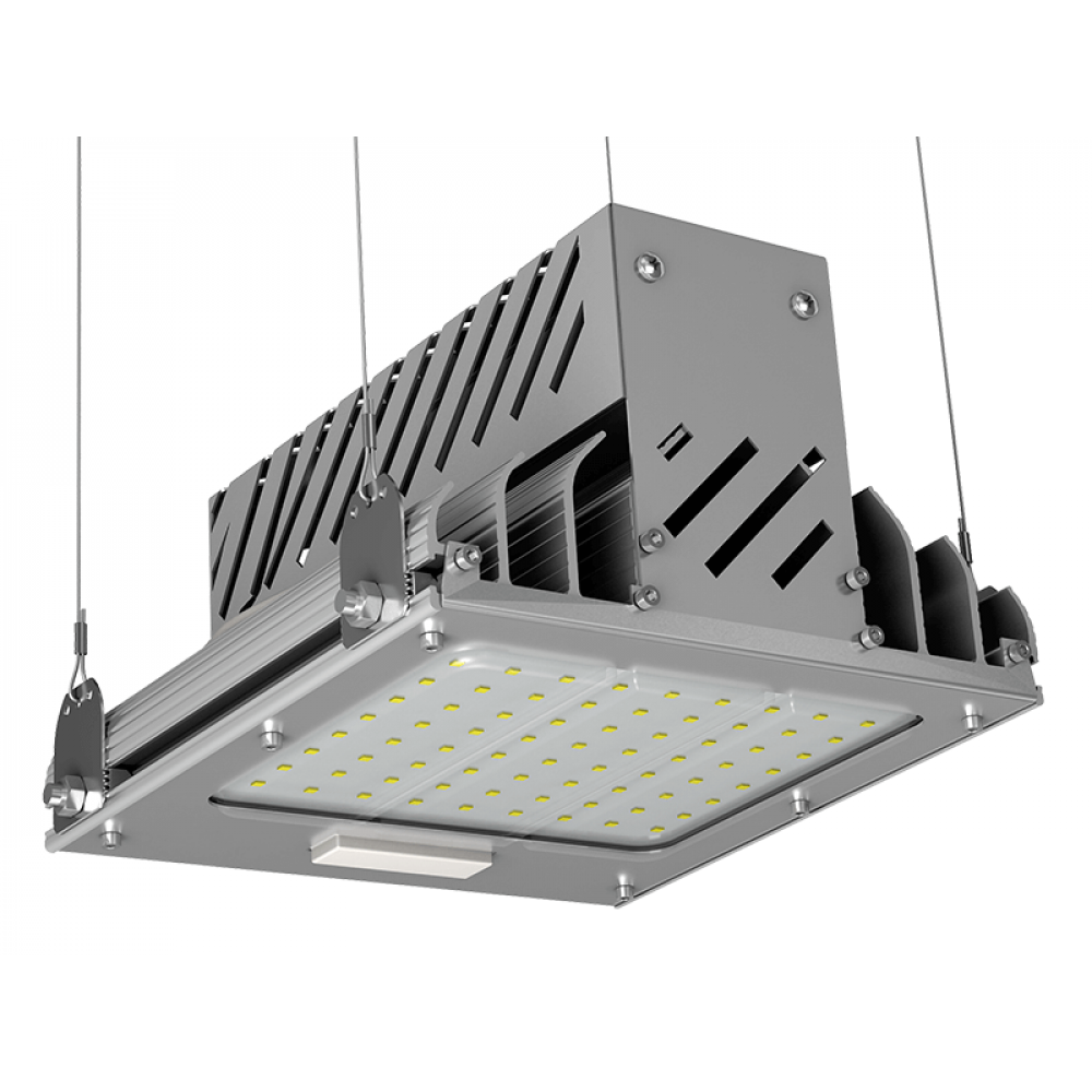 Светильник предназначен для подвесного монтажа на тросы или цепи, предусмотрена продольная регулировка подвесного крепежа.