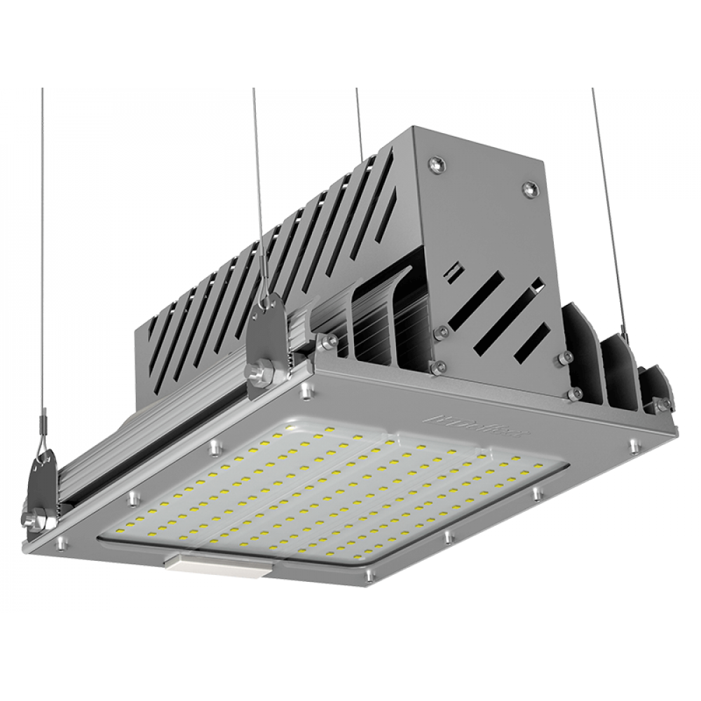 Светильник предназначен для подвесного монтажа на тросы или цепи, предусмотрена продольная регулировка подвесного крепежа.