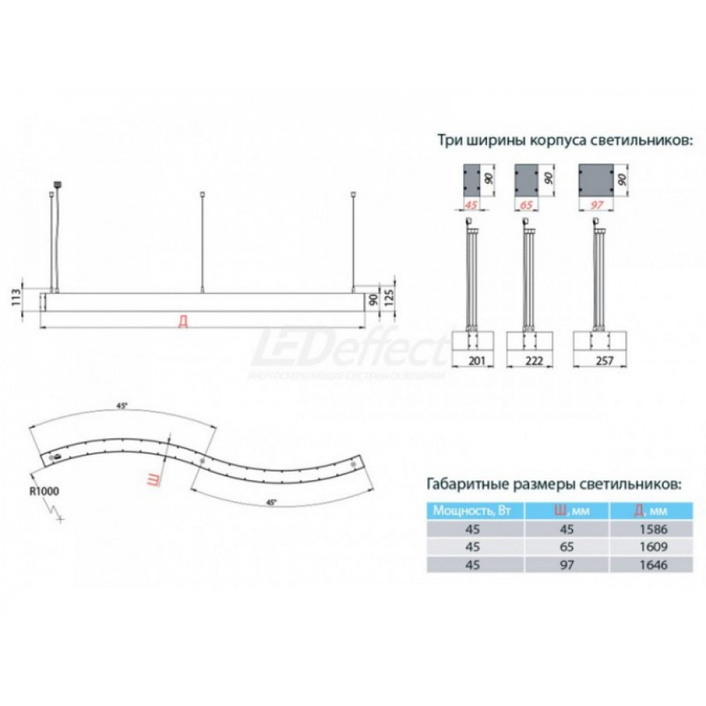 Технические характеристики LE-ССО-23-045-4494-20Т Линейный светильник cерии СТРЕЛА S