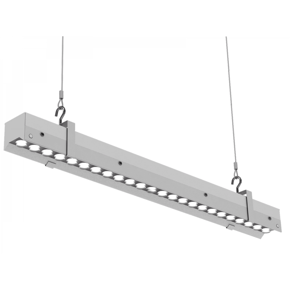 Удобный крепеж позволяет осуществлять подвесной монтаж, опционально можно устанавливать накладной крепеж с регулировкой угла наклона светильника.