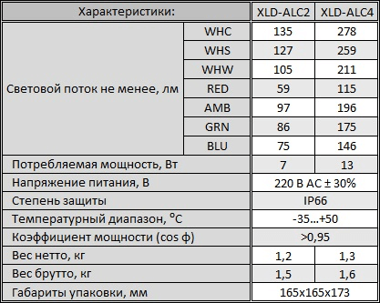 Технические характеристики XLD-ALC4 Светильник для архитектурного освещения