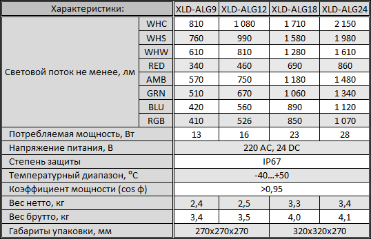 Технические характеристики XLD-ALG-9-WHC Грунтовый светодиодный прожектор