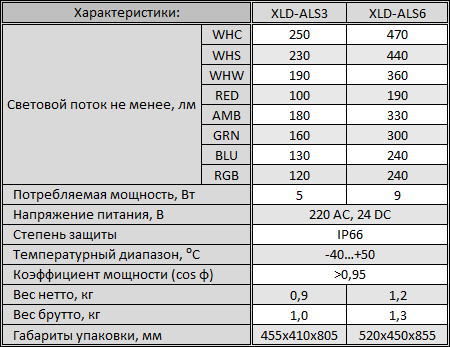 Технические характеристики XLD-ALS6-RGB Архитектурный светодиодный прожектор