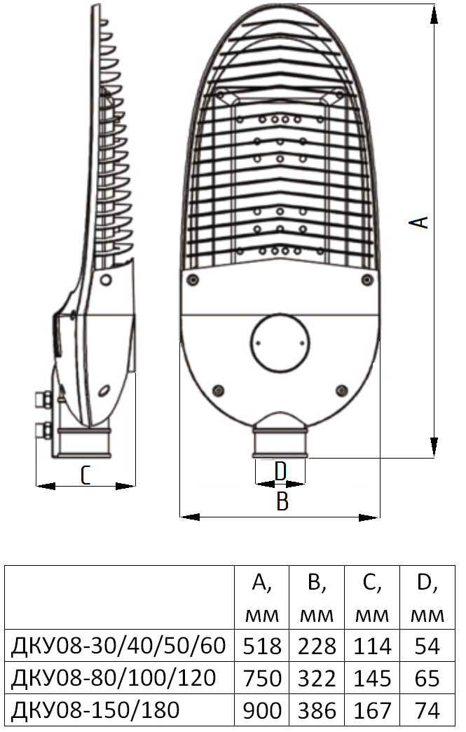 Установка осуществляется на опоры или консоли диаметром 50-73 мм на высоте 6-12 м (в зависимости от модели).