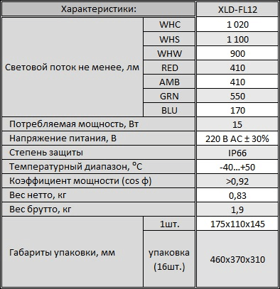 Мощность,Вт15 | Световой поток,Лм1100 | Напряжение питающей сети,В220В AC ± 30% |
