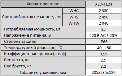 Технические характеристики XLD-FL24-WHS-220-04 Архитектурный светодиодный прожектор