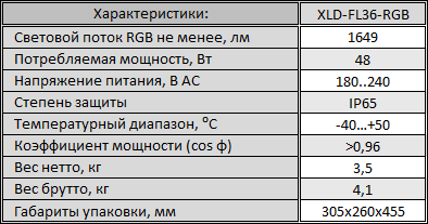 Технические характеристики XLD-FL36-RGB-220-ED Архитектурный светодиодный прожектор