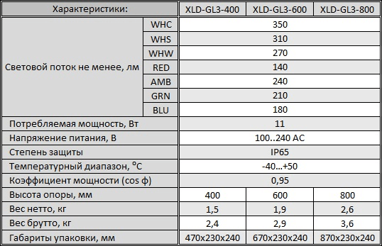 Технические характеристики XLD-GL3-WHS-400-01 Ландшафтный светодиодный светильник
