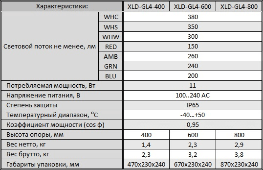 Технические характеристики XLD-GL4-WHS-800-01 Ландшафтный светодиодный светильник