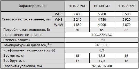 Технические характеристики XLD-PL72T-WHC-220-01 Парковый светодиодный светильник