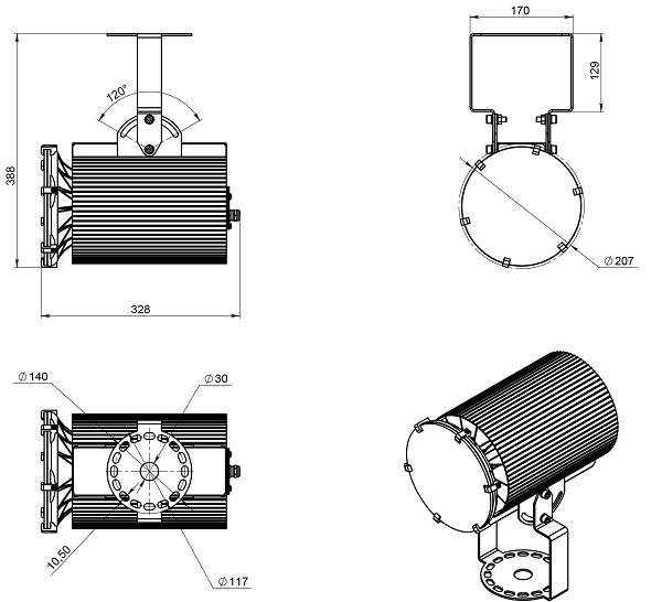 Корпуса светильников и кронштейны изготавливаются из алюминиевого сплава со специальным анодированным или полимерным покрытием.