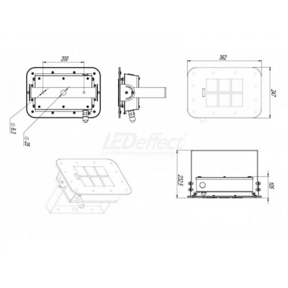 Технические характеристики LE-СБУ-32-040-1839Ех-67Х Взрывозащищенный светодиодный светильник серии KEDR Ех 2.0 (СБУ)