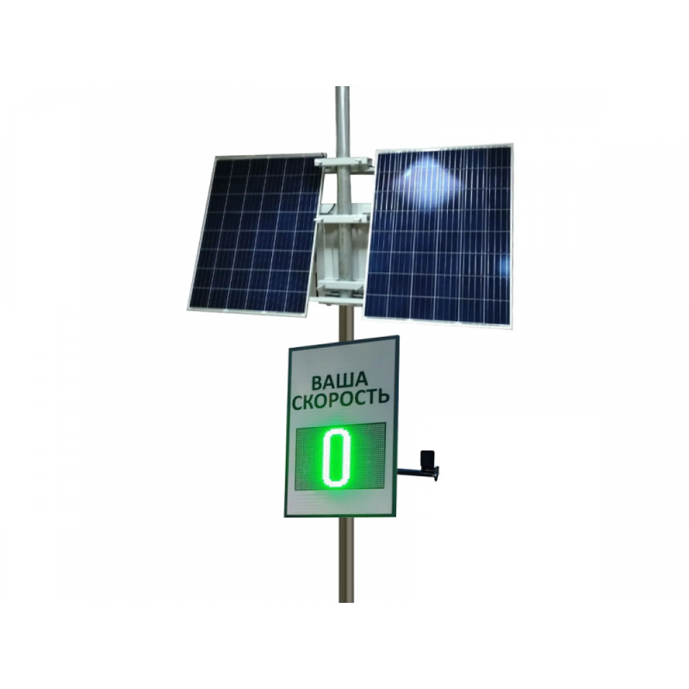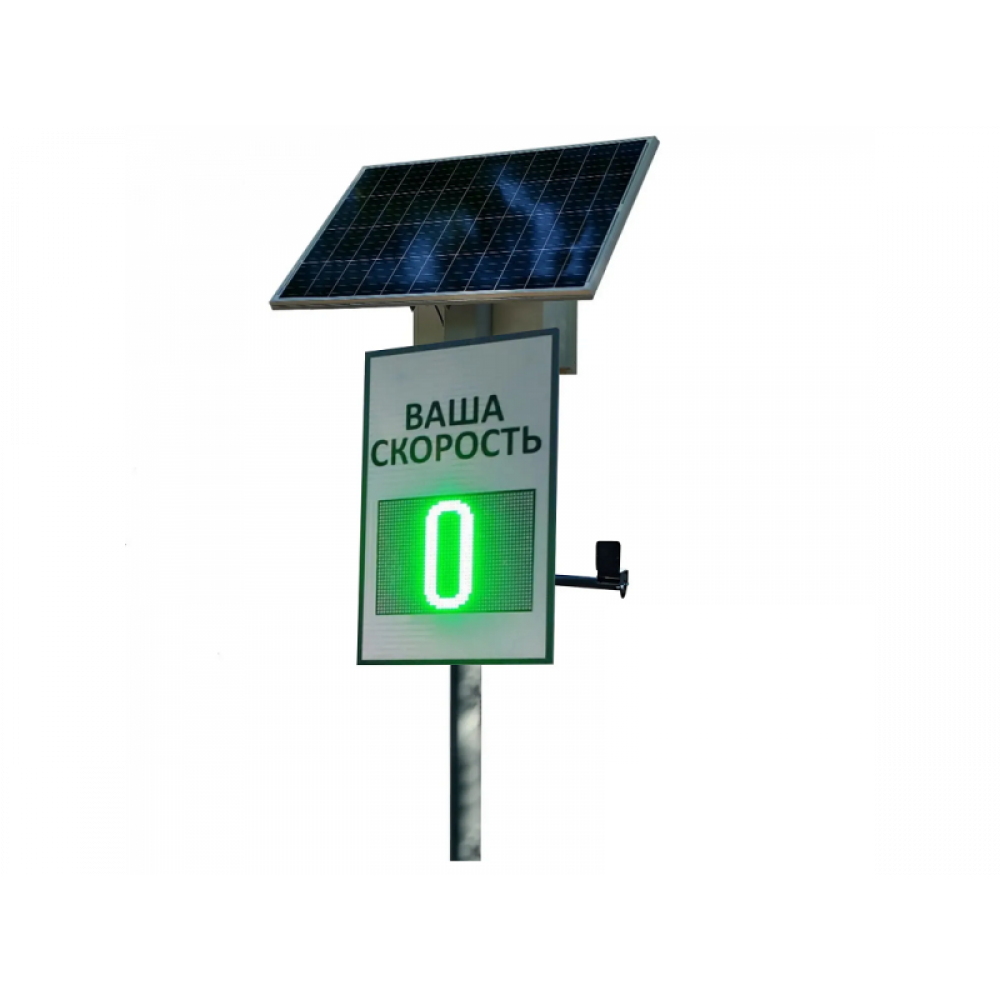 Табло контроля скорости представляет собой трех-секционное двухцветное (красное и зеленое) светодиодное табло, информирующее водителей в режиме реального времени об их скорости движения. Солнечная станция представляет собой пыле- влагозащищенный корпус из оцинкованного метала или металла с порошковой покраской, внутри которого располагается аккумуляторная батарея различной емкости солнечный контроллер заряда для управления к подключаемым потребителям. В комплекте поставляется солнечная панель, а также универсальный кронштейн для крепления.