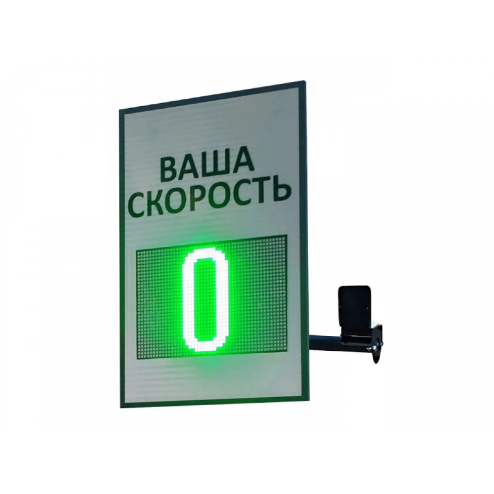 На лицевую часть табло нанесена маска из световозвращающей пленки "ВАША СКОРОСТЬ" и индикация с указанием текущей скорости.