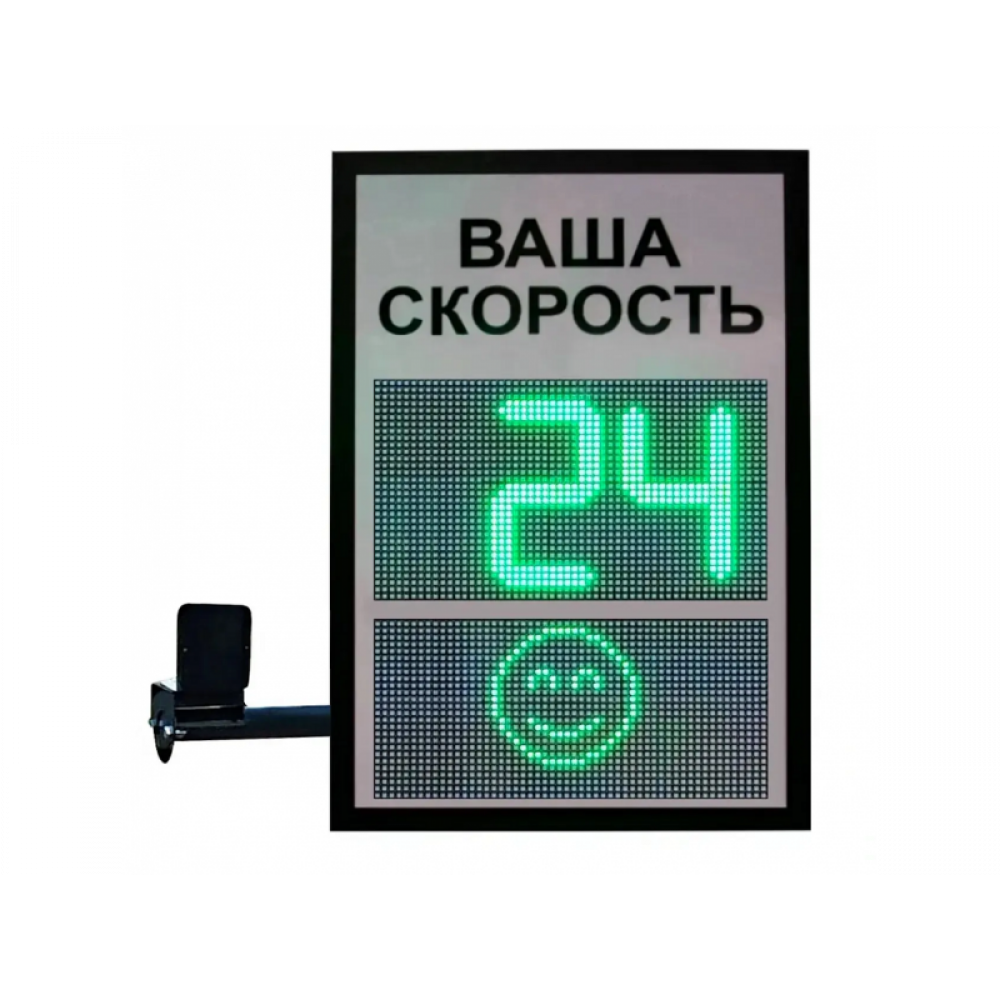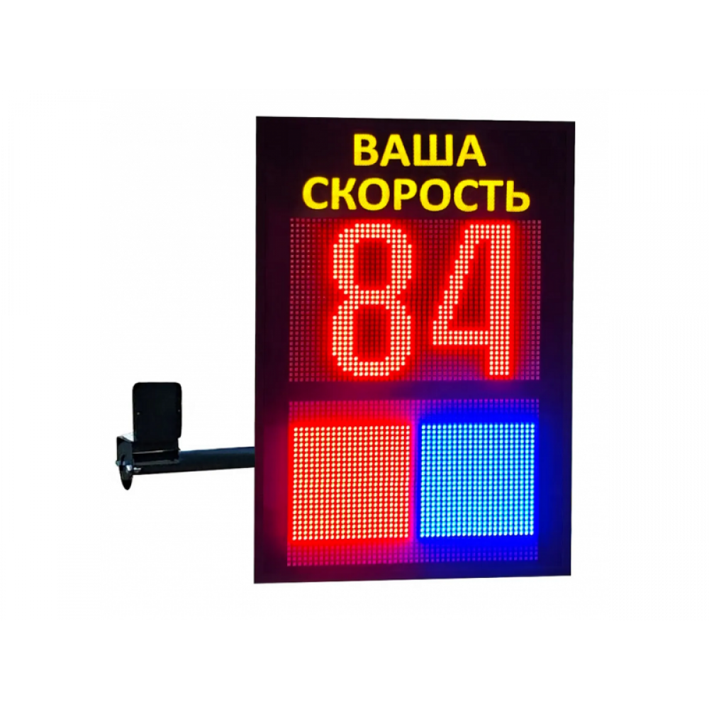 Так же данное табло дополнено светодиодными элементами "Смайл" или "СНИЗТЕ СКОРОСТЬ" позволит максимально привлечь внимание водителей транспортных средств. При превышении скоростного режима на табло дополнительно загорается надпись "грустный Смайл" красного цвета, при соблюдении скоростного режима - "веселый Смайл" зеленого цвета. В случае размещении светодиодной индикации "СНИЗТЕ СКОРОСТЬ" в дополнительной секции, при превышении - горит красным цветом, при разрешенной скорости зеленым цветом. Под заказ возможно изготовить табло скорости серии «Sheriff». При нарушении допустимых значений светодиодная индикация подает сигналы синего и красного цветов, имитирующие работу мигалки автомобиля ДПС.