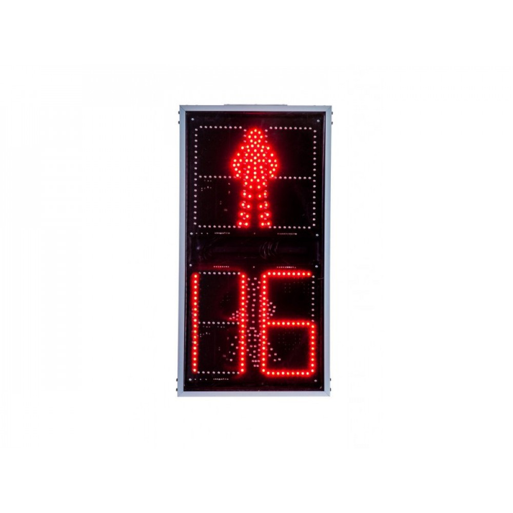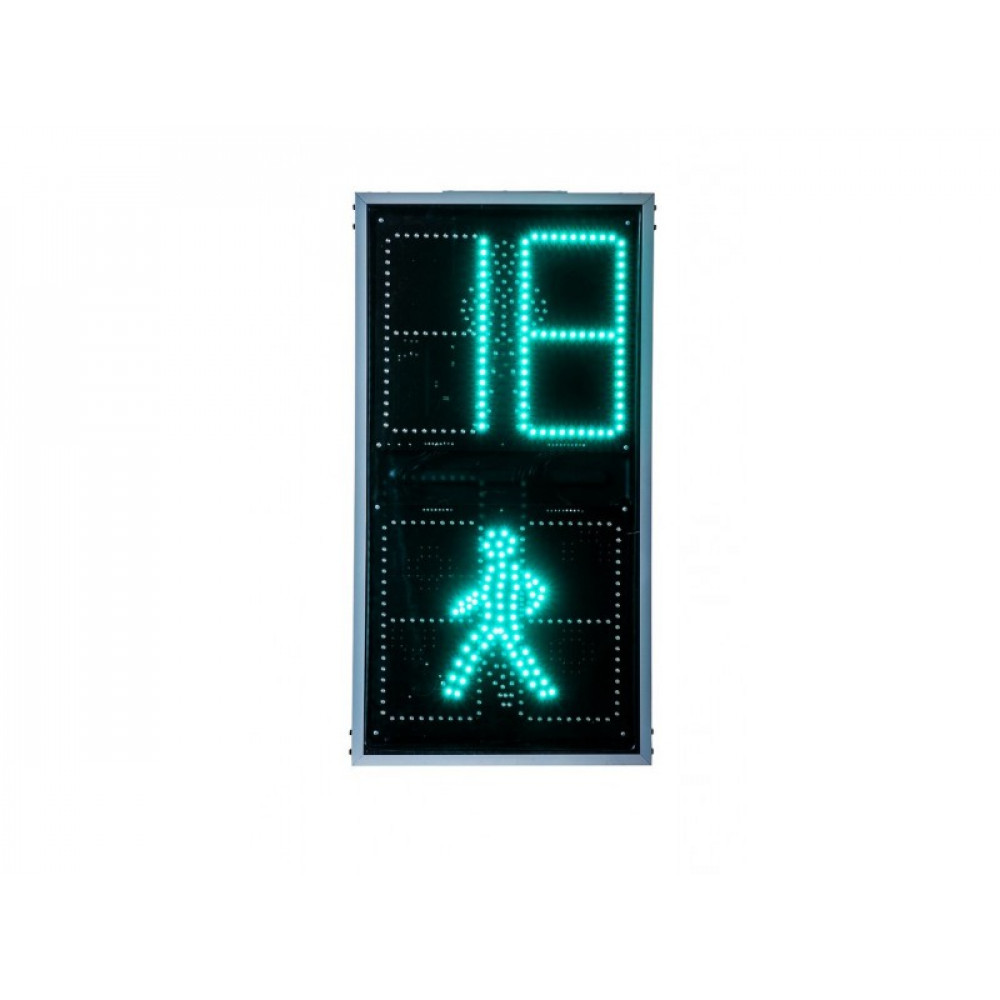 Светофор пешеходный П.1.1 (200мм) с ТООВ и ЗСП предназначен для регулирования пешеходного движения на проезжей части дороги. Состоит из двух секций с диаметром выходной апертуры 200 мм. В данную модель интегрировано табло обратного отсчета (анимацией) сигнала светофора (красный и зеленый), так же оснащен встроенным устройством звукового сигнала перехода. При наличии зеленого сигнала дорожного контроллера устройство излучает прерывистый звуковой сигнал. При наличии красного сигнала дорожного контроллера звуковой сигнал блокируется.