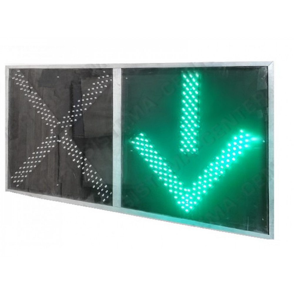 Светофор Т.4.1. реверсивный двухсекционный предназначены для регулирования движения транспортных средств по полосам проезжей части. Имеют два основных сигнала располагающихся на 2-х секциях: Х-образным красного свечения и зеленого свечения в виде стрелки направленной вниз.